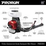 - MAXIMUM POWER: Robust 75.6cc (4.2 HP) 2-cycle engine delivers up to 50-foot spraying reach, 1020 CFM air volume & 240 MPH air speed.